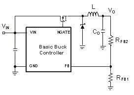 開關調整器最常用的是電壓調整器。圖1a為一種基本恒壓型降壓調整器。降壓控制器可以在輸入電壓變化的情況下,通過控制占空比或頻率的變化使輸出電壓保持恒定。輸出所需的電壓由下面的公式計算得到(Eq.1)