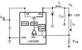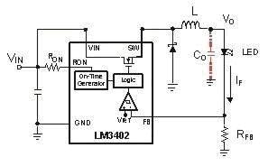 什么樣的應用條件不允許使用這種結構呢?例如家用或商用的照明需要上千流明,設計一種方法來驅動一個LED串。LED串上的總的正向壓降等于其中每個LED正向壓降之和。在一些情況下,系統的輸入電壓范圍可能比一串LED的正向壓降低,或者有的時候高有的時候低。這些情況下有可能會需要升壓結構,也有可能會需要降-升壓開關調整器。