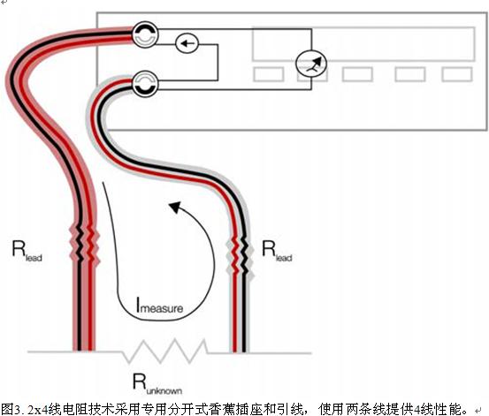 源端引線中的串聯(lián)電阻不影響電流流動(dòng)。測(cè)量/傳感引線幾乎沒有電流流動(dòng),因?yàn)閮x表的輸入阻抗很高。這意味著測(cè)量引線中沒有I x R電壓下跌。因此,您只需測(cè)量由于流經(jīng)的源電流而在未知電阻器中產(chǎn)生的電壓下跌。