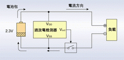 隨著使用時間的增加,已充過電的鋰離子電池電壓會逐漸降低,最后低到規(guī)格標(biāo)準(zhǔn)值以下,此時就需要再度充電。若未充電而繼續(xù)使用,可能造成由于過度放電而使電池不能繼續(xù)使用。為防止過度放電,保護IC必須檢測電池電壓,一旦達到過度放電檢測電壓以下,就得使放電一方的功率MOSFET切斷而截止放電。但此時電池本身仍有自然放電及保護IC的消耗電流存在,因此需要使保護IC消耗的電流降到最低程度。