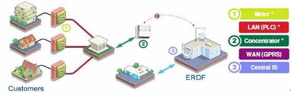 圖1:法國EDF旗下公司法國配電公司(ERDF)的Linky項目簡略示意圖。