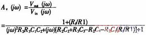 利用理想運放的分析方法,求得該電路的頻率特性函數(shù)為: