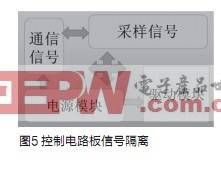大功率DC/DC變換器控制電路主要由電源模塊、采樣信號、通訊信號以及驅動模塊組成,為防止相互間信號干擾,在設計電路的時候將其隔離,如圖5所示。