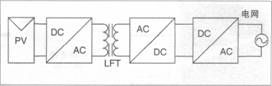 高頻隔離并網(wǎng)逆變器(如圖4)具有電氣隔離、體積、重量、成本降低等優(yōu)勢,但系統(tǒng)效率只有90%—95%。