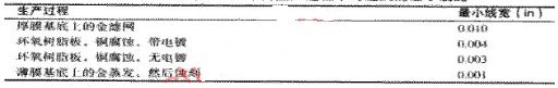 走線寬度上的第二個不太重要的限制來自生產制造過程。表1列出了在各種不同的生產過程中可達到的最小走線寬度。