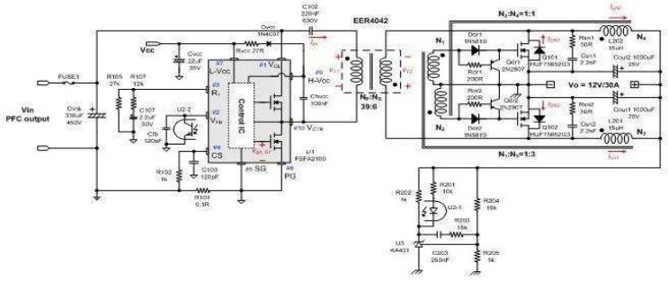 圖3 360 W PC電源的設計示例 (12 V, 30 A)