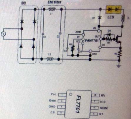 FL7701智能非隔離型PFC降壓LED驅動器(實物圖)
