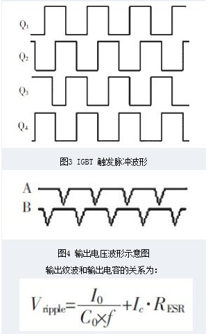 鑒于以上問題,本文采用雙路電源并聯(lián)輸出的方法得到低紋波直流。在開關(guān)管頻率受限的今天,本方法可以在頻率較低的情況下得到低紋波直流。