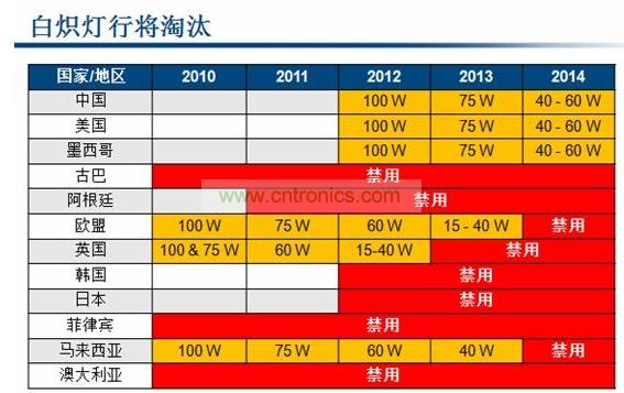 Power Integrations產品營銷經理Andrew Smith道:“所有的國家都是先從大功率的100W白熾燈開始淘汰,接下來才是75W等小功率的白熾燈。歐盟在2010年就淘汰了100W白熾燈,美國、中國等則是在2012年開始淘汰。所以市場上對于能替換100W白熾燈的大功率LED是有非常強勁的市場需求的。”