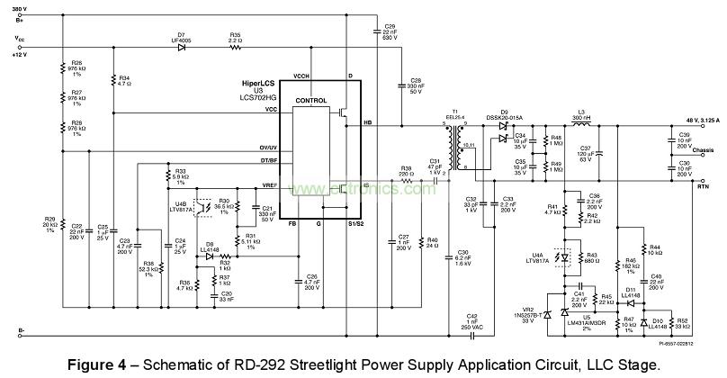RDR-292 中所介紹的驅動器電路,在 230 VAC 和 110 VAC 輸入條件下效率分別可超越 93% 和 91% 。 此設計提供系統功率因子 (PF) 達 0.97 以上,THD 小于 10%,可輕松符合 EN61000-3-2 C。在相同的設計平臺下,只要簡單的從HiperPFS™( PFC)和HiperLCS™(LLC)家族成員中選擇不同的轉換器 IC以及對應的功率器件的大小,就能將設計在 75 W 到 400 W 之間進行調整。