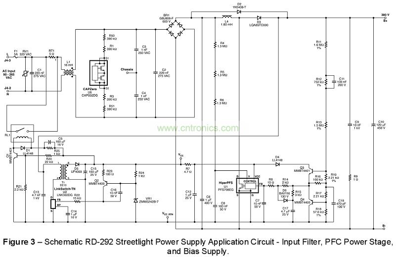 Power Integrations推出適用于 LED 街燈和其它工業/基礎建設照明系統的 150 W、48 V 電源供應器參考配套設計。該設計組合了PFS功率系數級和LCS輸出級,輸入電壓90 VAC - 265 VAC,100%負載和50%負載時的功率系數大于0.9。本文介紹了PFS704-729EG HiperPFS系列產品亮點,方框圖,多種應用電路以及90 VAC - 265 VAC輸入48V/150W LED街燈照明參考設計主要指標,電路圖和材料清單于PCB布局圖。