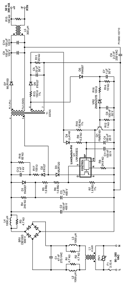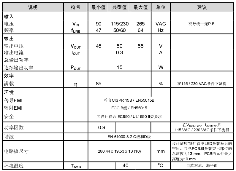 此設(shè)計的主要目標是超薄和高效率。這樣有助于使驅(qū)動器板適應T8燈管內(nèi)LED負載板后的空間,并將工作時的溫升保持在可接受的范圍以內(nèi)。為此,必須認真選擇元件和安裝方法,但這相比于方案的更換更加簡單,因為初級側(cè)調(diào)節(jié)的LinkSwitch-PH設(shè)計所需的元件數(shù)量很少。