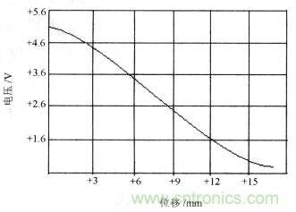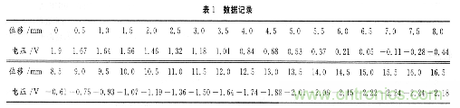 從圖7中PC機(jī)界面顯示位移一電壓坐標(biāo)圖,表1記錄的數(shù)據(jù)以及圖8在示波器上顯示的霍爾線性電路理想電壓一位移曲線圖相比較,可以發(fā)現(xiàn)由于傳感器實(shí)驗(yàn)臺(tái)受外界干擾等原因使得輸出信號(hào)輸出誤差在所難免,而且沒有電平轉(zhuǎn)換,使得VB繪圖中得到的數(shù)值存在負(fù)值;但是可以在圖中看到傳感器輸出的電壓值在正負(fù)之間有明顯的對(duì)稱性,與要求輸出的理想輸出信號(hào)波形相符合,證明本系統(tǒng)運(yùn)行良好,設(shè)計(jì)的非常成功。