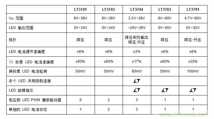 通過運用 3 種電流調節狀態,LT3744 使系統設計師能夠自由決定 LED 色彩,從而產生色彩更加準確的視頻影像。通過直接調節 LED 電流和對所有信號進行電平轉換,LT3744 能夠產生負電壓,從而允許憑借簡單的雙開關解決方案,用低壓電池供電系統驅動多個 LED 串。LT3744 可以非常簡便地并聯,以向 LED 高效率提供極大的電流,同時保持電流準確度和電流均分,甚至在 PWM 調光時也是如此。并聯 LT3744 降低了電路板溫度和電感器電流,并將所支持的 LED 功率提高到數百瓦。