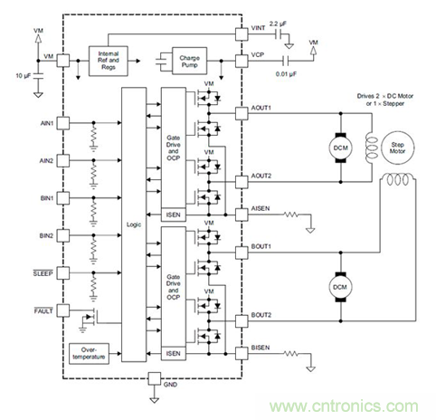 DRV8833:具有電機電流控制和低RDSon 360的雙H橋電機驅動器毫歐。