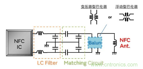 ANFC電路由NFC的IC、LC濾波器、匹配電路、天線構成。