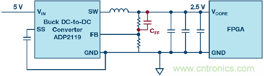 圖6. 當沒有環路補償引腳可用時,利用前饋電容可以調節控制環路。