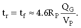 當V G達到V P的 99%時,MOSFET完全導通。如果將此關系替換回公式5,則上升和下降時間將減少為: