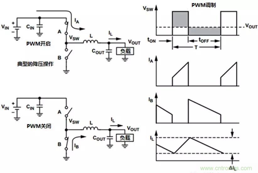 占空比 = 開關(guān)開通的時(shí)間/ 工作同周期。開通和關(guān)閉開關(guān)影響了電感能量的儲(chǔ)存和釋放,從而影響輸出的電壓。