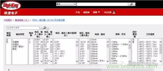 圖5:Digi-Key官網(wǎng)上的降壓-升壓轉(zhuǎn)換器的參數(shù)選項(xiàng)