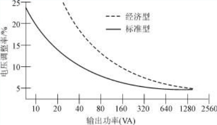 圖3 環形變壓器電壓調整率與輸出功率的關系曲線