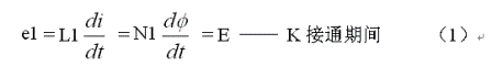 式中e1為變壓器初級(jí)線圈產(chǎn)生的電動(dòng)勢(shì),L1為變壓器初級(jí)線圈的電感量, 為變壓器鐵心中的磁通量,E為變壓器初級(jí)線圈的輸入電壓。其中磁通量 還可以表示為: