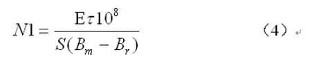 (4)式就是計(jì)算反激式開關(guān)電源變壓器初級(jí)線圈N1繞組匝數(shù)的公式。式中,N1為變壓器初級(jí)線圈N1繞組的最少匝數(shù),S為變壓器鐵心的導(dǎo)磁面積,單位:平方厘米;Bm為變壓器鐵心的最大磁感應(yīng)強(qiáng)度,單位:高斯;Br為變壓器鐵心的剩余磁感應(yīng)強(qiáng)度,單位:高斯),Br一般簡(jiǎn)稱剩磁;τ = Ton,為控制開關(guān)的接通時(shí)間,簡(jiǎn)稱脈沖寬度,或電源開關(guān)管導(dǎo)通時(shí)間的寬度,單位:秒;E為工作電壓,單位為伏。式中的指數(shù)是統(tǒng)一單位用的,選用不同單位制,指數(shù)的值也不一樣,這里選用CGS單位制,即:長(zhǎng)度為厘米(cm),磁感應(yīng)強(qiáng)度為高斯(Gs),磁通單位為麥克斯韋(Mx)。