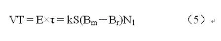 (5)式中, 就是變壓器的伏秒容量,即:伏秒容量等于輸入脈沖電壓幅度與脈沖寬度的乘積,這里我們把伏秒容量用VT來(lái)表示。伏秒容量VT表示:一個(gè)變壓器能夠承受多高的輸入電壓和多長(zhǎng)時(shí)間的沖擊。
