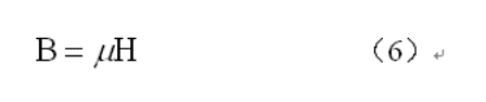 由圖3中可以看出,對(duì)應(yīng)不同的磁場(chǎng)強(qiáng)度,即不同的磁化電流,磁通變化量也是不一樣的,并且磁通變化量與磁場(chǎng)強(qiáng)度不是線性關(guān)系。圖4是磁感應(yīng)強(qiáng)度與磁場(chǎng)強(qiáng)度相互變化的函數(shù)曲線圖。圖4中,曲線B是磁感應(yīng)強(qiáng)度與磁場(chǎng)強(qiáng)度對(duì)應(yīng)變化的曲線;曲線 為導(dǎo)磁率與磁場(chǎng)強(qiáng)度對(duì)應(yīng)變化的曲線。其中: