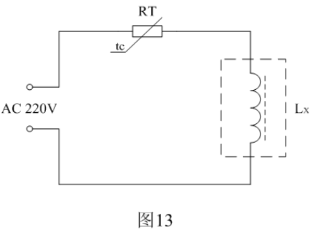 高壓包退磁的方法是用一個20~40歐姆的消磁熱敏電阻(可用兩個消磁熱敏電阻串聯)與高壓包初級線圈串聯,然后接到110~220V/50Hz交流電源上,大約需要20多秒鐘,待消磁熱敏電阻完全加熱后,即可達到退磁的目的,如圖13所示。圖13中RT為熱敏電阻,Lx為高壓包初級線圈。一般消磁電流需要達到極限電流Imax的3~5倍。
