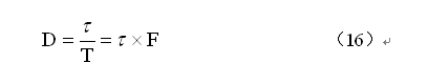 c.開關電源變壓器工作電壓的脈沖寬度 ,可由開關電源在某工作電壓狀態下(最高或最低),對應的占空比D求得。下面(16)式和(17)式是計算脈沖寬度 和占空比D的關系式: