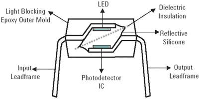 光學(xué)耦合器的工作基礎(chǔ)是LED發(fā)出的光通過透明的絕緣介質(zhì)到光電探測器,這種介質(zhì)提供2.5kV-6kV范圍的高壓絕緣。光耦合程度取決于光導(dǎo)材料。絕緣將通過光導(dǎo)材料本身或通過額外的光傳導(dǎo)介電材料實現(xiàn)。在任何情況下,LED的排列、光導(dǎo)材料、介電材料和IC都會直接影響光耦合和高壓絕緣的性能。