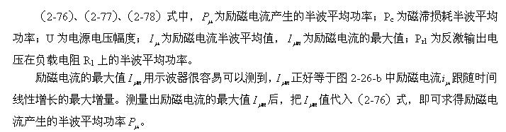 因此,(2-81)、(2-82)、(2-83)、(2-84)式最好只用于對(duì)正激式輸出的單激式開(kāi)關(guān)電源變壓器進(jìn)行磁滯損耗和渦流損耗功率測(cè)試,因?yàn)槠涑跫?jí)線圈的電感相對(duì)比較大,勵(lì)磁電流比較小;如果需要對(duì)反激式輸出的單激式開(kāi)關(guān)電源變壓器進(jìn)行測(cè)試,最好只用于對(duì)小功率開(kāi)關(guān)電源進(jìn)行對(duì)比測(cè)試。