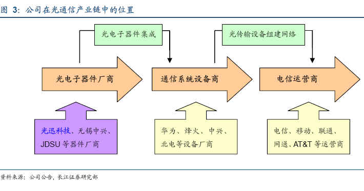 全球光通信行業長期向好--公司增長的基礎如圖3所示,光迅科技處于光通信產業鏈的上游位置,故公司的增長前景,取決于光通信行業的未來趨勢。