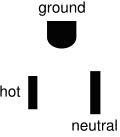 北美ANSI/NEMA標準插座的安裝方向沒有限制(圖3.4a),插座的零/火線通過插孔尺寸識別——零線插孔較火線更寬(圖3.4b)。相應地,插頭上零線插片也較寬(圖3.4c)。這樣,即使插頭為兩芯也能防止插反。相關標準還特別規定,20A插頭的零線方向與火線方向垂直(圖3.4d),與之匹配的插座零線插孔為T形(圖3.4e),可向下兼容兩種不同插頭。