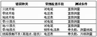 無論哪種插座,正確接線只有1種,其它組合都是錯誤的。為確保設備和人身安全,插座在投入使用之前,必須依照規范進行檢查。準確辨別各種接線錯誤(3芯插座的接線錯誤歸納于表4.1)需要必要的工具和方法。