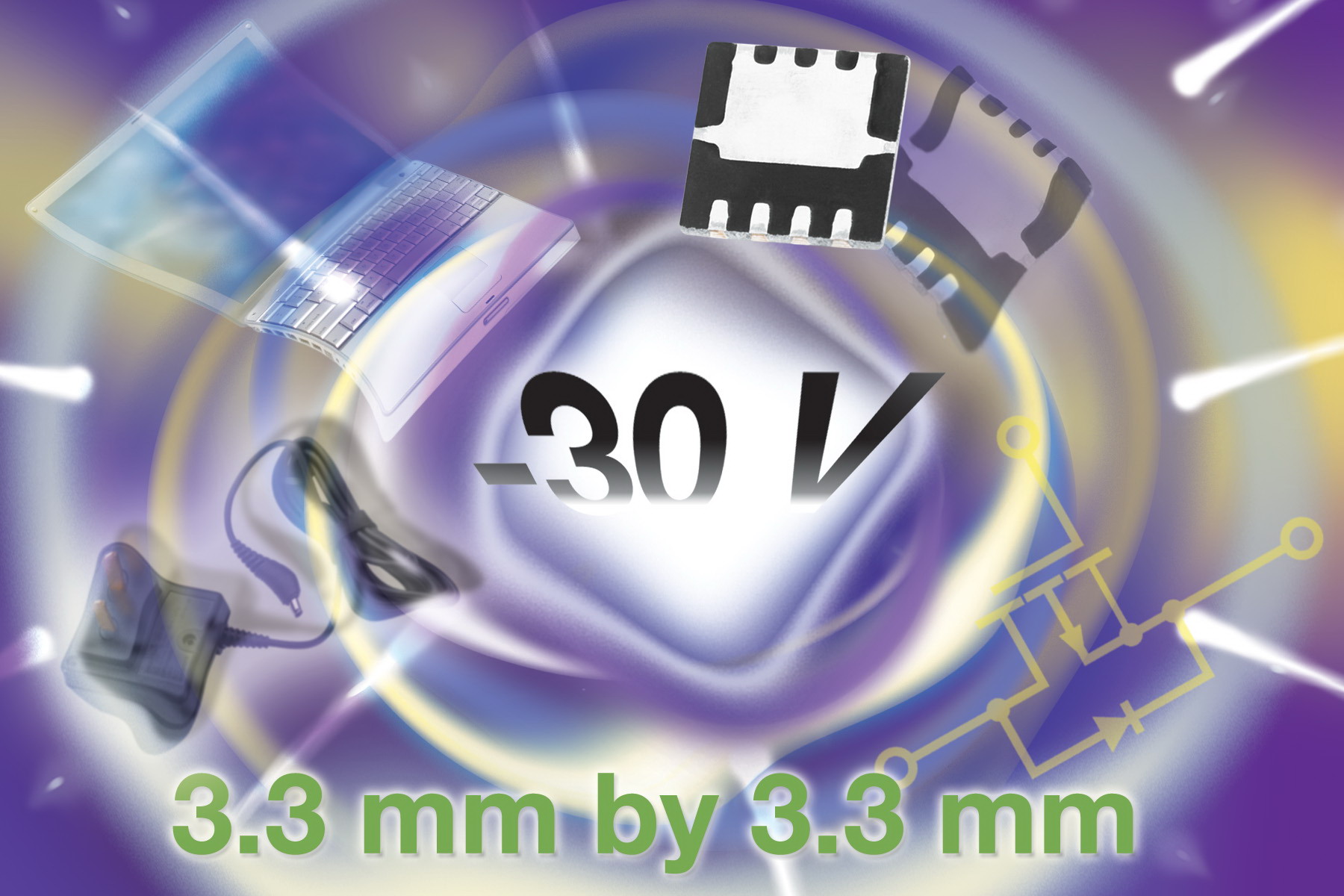 Si7625DN在10V和4.5V下的導通電阻低至7mΩ和11mΩ,這些數(shù)值比此前3.3mmx3.3mm占位面積的30V器件在10和4.5V下的導通電阻分別低30%和39%。