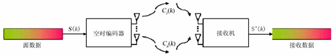 空時編碼通過在發射端的聯合編碼增加信號的冗余度,從而使信號在接受端獲得分集增益,但空時編碼方案不能提高數據率。空時編碼的系統框圖參見圖2。
