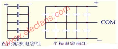 感應加熱設備電路結(jié)構分為兩種.從市面上的產(chǎn)品來看,30KW以內(nèi)采用的是半橋.30KW以上采用的是全橋.以半橋30KW機芯來看,薄膜電容器的使用情況如下: