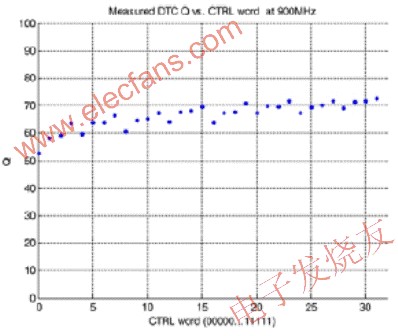 圖7:DuNEDTC器件的品質(zhì)因數(shù)實測結(jié)果,在900MHz時其Q值為60-70。