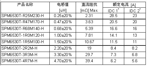 TDK股份有限公司旗下子公司TDK-EPC公司開發出汽車剎車系統和汽車前燈、發動機電子控制單元(ECU)電源電路的DC-DC轉換器的扼流線圈用SMD型功率電感器SPM6530-H,并已于2011年4月起投入量產。