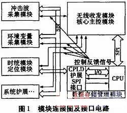 無(wú)線傳感器網(wǎng)絡(luò)是由大量傳感器節(jié)點(diǎn)通過(guò)無(wú)線通信自組織構(gòu)成的網(wǎng)絡(luò),被認(rèn)為是將對(duì)21世紀(jì)產(chǎn)生巨大影響力的技術(shù)之一。在分布式測(cè)試中使用無(wú)線傳感器網(wǎng)絡(luò),不受通信電纜的限制、組態(tài)靈活、重構(gòu)性強(qiáng),可以在較惡劣的測(cè)試環(huán)境中使用。由無(wú)線傳感器網(wǎng)絡(luò)組成的分布式測(cè)試系統(tǒng)已應(yīng)用于水中爆炸測(cè)試系統(tǒng)。在一些分布場(chǎng)測(cè)試系統(tǒng)中,被測(cè)量種類繁雜,為完成測(cè)試任務(wù),節(jié)點(diǎn)采用模塊化設(shè)計(jì),SPI接口電路簡(jiǎn)單、傳輸速度快,各模塊通過(guò)SPI總線通信協(xié)同完成測(cè)試任務(wù)。但在實(shí)際開(kāi)發(fā)應(yīng)用中,由于系統(tǒng)要求,使某些模塊與多個(gè)模塊鏈接,且接口工作在不同的模式下,如果完成通信需要功能模塊的SPI接口主從切換,致使通信速度與靈活性降低。CPLD具有可編程性特點(diǎn),可根據(jù)需要擴(kuò)展專用SPI接口電路,提高系統(tǒng)通信速度與靈活性,方便系統(tǒng)擴(kuò)展功能模塊,提高系統(tǒng)整體性能。