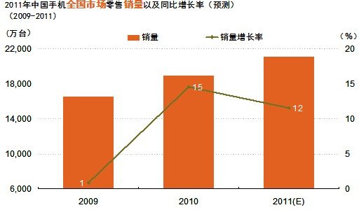 2011年全年手機(jī)市場(chǎng)銷量繼續(xù)上升