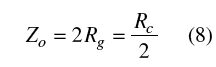 源和負載阻抗之間必需有1:4的轉換以實現阻抗匹配。因此,傳輸線特性阻抗和源及負載阻抗之間的關系可表示為: