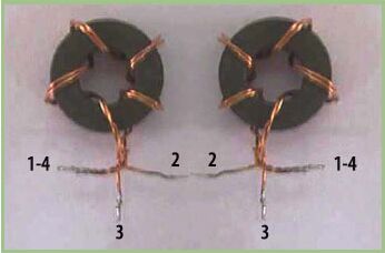 這種寬帶unun阻抗變壓器對測試電路、光接收器系統、帶寬帶阻抗匹配的微波電路,以及天線耦合也很有用。可用于高頻電路設計及仿真的現代計算程序在自己的工具箱里就收納了這種器件。寬帶unun阻抗變壓器包含了一個纏繞了雙絞傳輸線的環形鐵氧體磁芯,繞線間通過釉質膜隔離。結合常規傳輸線阻抗變壓器的設計元件,有可能建立起一個真正的寬帶組件。對1:4阻抗轉換比而言,這種設計方式可提供很高的效率。