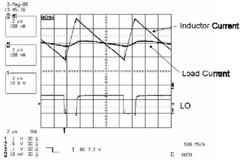 下圖, 說明了電感減小時,在輸出電壓的變化范圍內(nèi),負(fù)載電流的波動明顯增大。