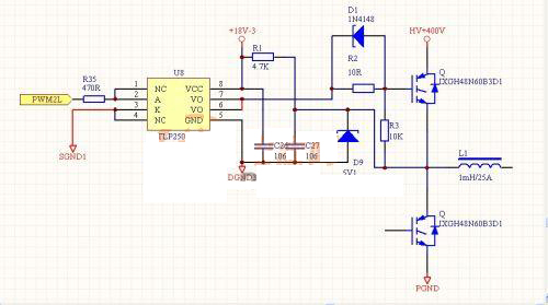 1:驅動電阻R2,這個在驅動里頭非常重要,圖上還有D1配合關閉的時候,讓IGBT的CGE快速的放電,實際上看需要,這個D1也可以不要,也可以在D1回路里頭串聯一個電阻做0FF關閉時候的柵極電阻。