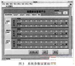 如圖2所示,上位機煙箱缺條管理平臺系統主要包括串口通訊、參數設置、系統報警、數據存儲、報表輸出、剔除信號輸出等6大模塊;利用LabVIEW建立與下位機進行串口通訊的子VI,對接收到的數據進行處理,判斷是否發生缺條。當發生缺條時,上位機除了產生剔除控制信號、報警之外,還將缺條信息存入數據庫中,方便操作人員日后查詢等。圖3為煙箱缺條管理平臺的參數設置前面板圖。