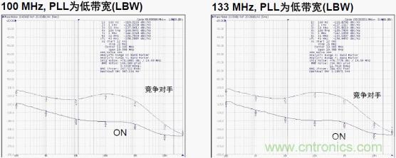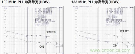 另外,多個PLL分層布置時,用戶可調節帶寬對時鐘樹進行系統優化。使用HBW(高帶寬)擴頻時鐘時用于維持擴頻特性,從而將輸入與輸出相位差減至最??;使用LBW (低帶寬)可濾除PLL帶寬內的時鐘輸入抖動。