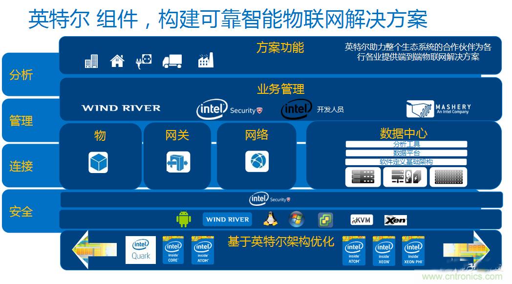 有鑒于此,英特爾將基于分析、管理、連接、安全四大關鍵點,提供端到端可靠、智能物聯網解決方案,加速物聯網解決方案發展。